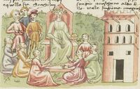 Miniatore fiorentino (1427-1430), La compagnia dei dieci novellatori seduta nel giardino