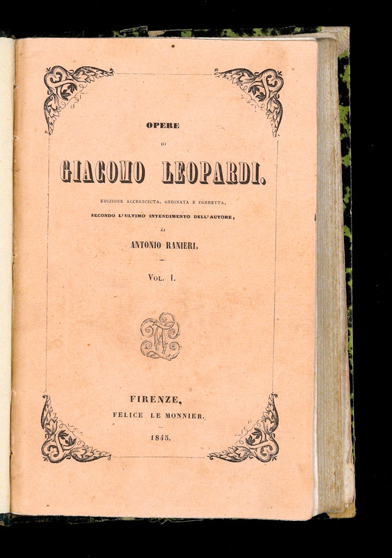 Così quel progetto di opere non vede la luce, ma il compagno degli ultimi anni, Antonio Ranieri, prende in carico la sua pubblicazione, che avviene a otto anni dalla morte di Leopardi, presso l’editore Le Monnier di Firenze, nel 1845. Per l’allestimento dell’edizione, Ranieri può basarsi sui lavori di Leopardi degli ultimi anni, per l’editore napoletano e per il parigino, per il quale erano state apportate correzioni ai testi già pubblicati, ma erano state anche aggiunte due ultime poesie, il Tramonto della luna e La ginestra, e vengono pubblicate le Operette, mettendo insieme la prima serie edita nel 1827, già ripubblicata nel 1835, i testi successivi usciti nel 1834 e le ulteriori aggiunte inedite di Frammento apocrifo di Stratone di Lampsaco, Il Copernico e Dialogo di Plotino e Porfirio.