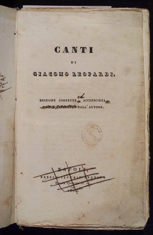 Infatti, per quanto riguarda i Canti, le ultime volontà sono testimoniate dalla cosiddetta Starita corretta, cioè sulla copia su cui è intervenuto l’autore, a cui si è già accennato, del testo dato alle stampe nel 1835.