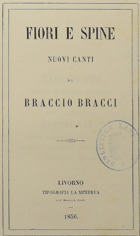 Nel 1856, Braccio Bracci pubblica una piccola raccolta di versi, Fiori e spine. Nuovi canti (Livorno, Tipografia La Minerva). L’edizione è accompagnata da una lettera di Francesco Domenico Guerrazzi, datata Toga, 24 settembre 1854, nella quale la penna di Bracci viene definita come quella di un «uccello destinato al gran volo». Nella stessa lettera, Guerrazzi esorta tutti i poeti italiani a prendere ispirazione dalla grande poesia romantica d’Oltralpe: «guardate la poesia de’ cento poeti Alemanni moderni, e dei Pollacchi e degli Scandinavi, e perfino dei Russi [...] studiatela, io vi scongiuro, [...] queste varie poesie vi apriranno nuovi ed immensi orizzonti: percorreteli vi basteranno le ali» (Guerrazzi 1854).