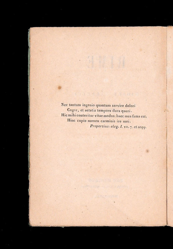 Quasi subito in apertura del volume, sul verso del frontespizio, troviamo citati i vv. 7-10 dell’elegia I vii di Properzio: