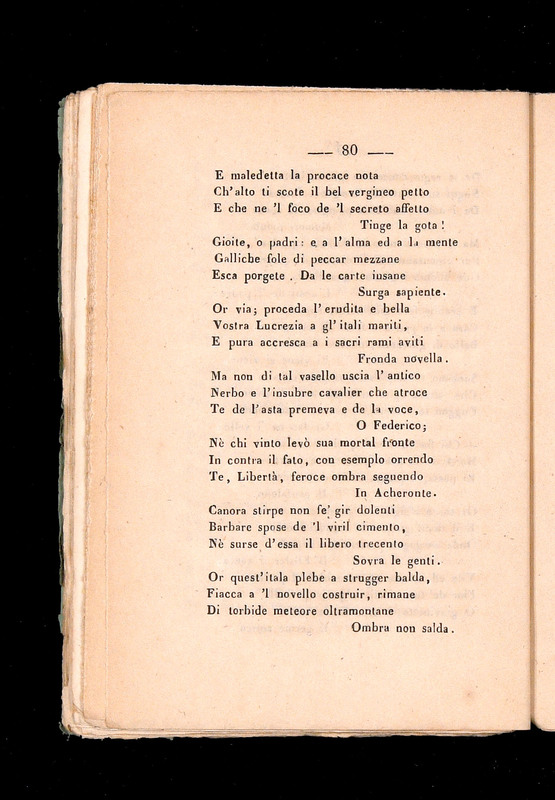 Al posto dei vani amori (v. 5), rivendica una poesia ispirata all’ardore civile (vv. 9-11):