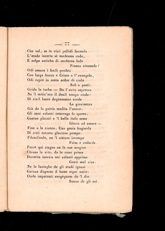 La critica si rivolge poi a preti, filosofi e poeti ottimisti, accusati di annunciare una falsa rinascita civile (vv. 21-32). Una genìa bugiarda (v. 33), responsabile dell’inerzia morale e culturale del presente (vv. 33-44)